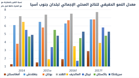 نمو الناتج المحلي الإجمالي لدول جنوب آسيا (مجموعة البنك الدُّوَليّ)